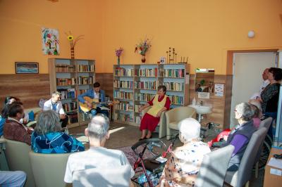 A program nyitó előadására, a zenei dallamok megszóllaltatására elsőként a klubunk elnöke kapott felkérést. Elnök Úr ezt nagy örömmel vállalta. Gondosan váloggatta meg a lejátszott dalokat, amelyeket halkan, majd kicsit bátrabban dudolásztak a betegek, s erőtlen kezeikkel meg is tapsolták.
